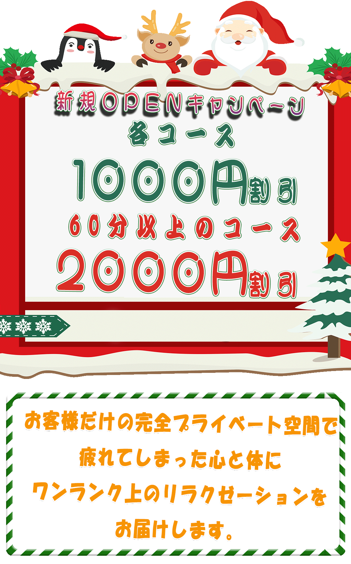 当店では、アロマオイルの効能と当店自慢のセラピストによるリンパマッサージの相乗効果による、癒しのひとときをお客様お一人お一人にお届けしております、自然で心やすらぐ優美な香りを、施術中はもちろんご帰宅お休みになってから翌日朝目覚めでまで楽しんで頂けます、どうぞゆっくりご堪能ください。